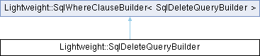 Public Member Functions inherited from Lightweight::SqlWhereClauseBuilder< SqlDeleteQueryBuilder > | |